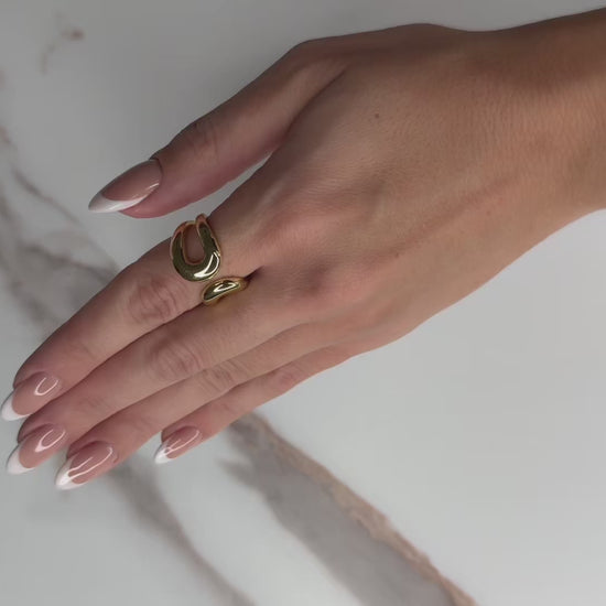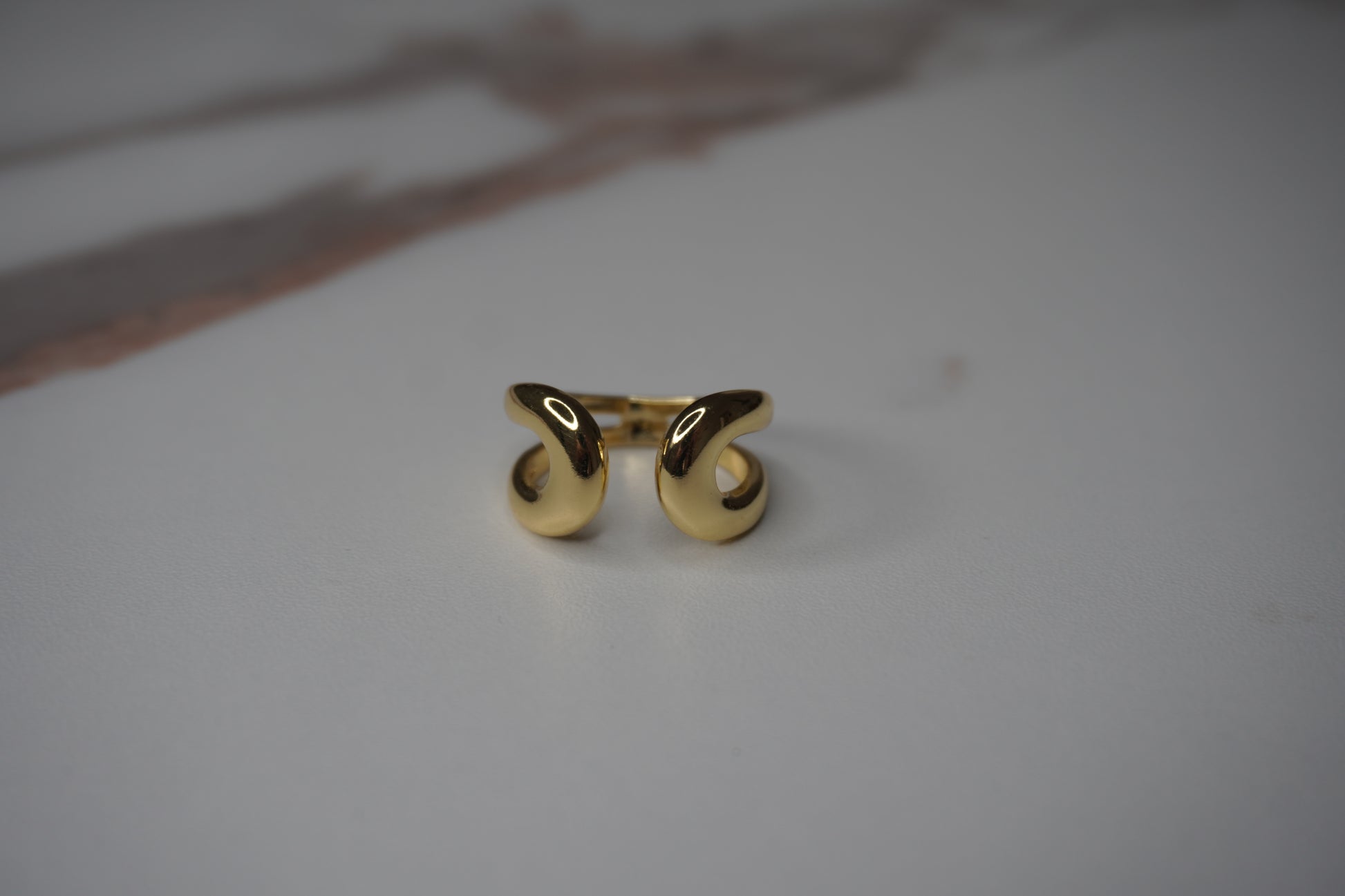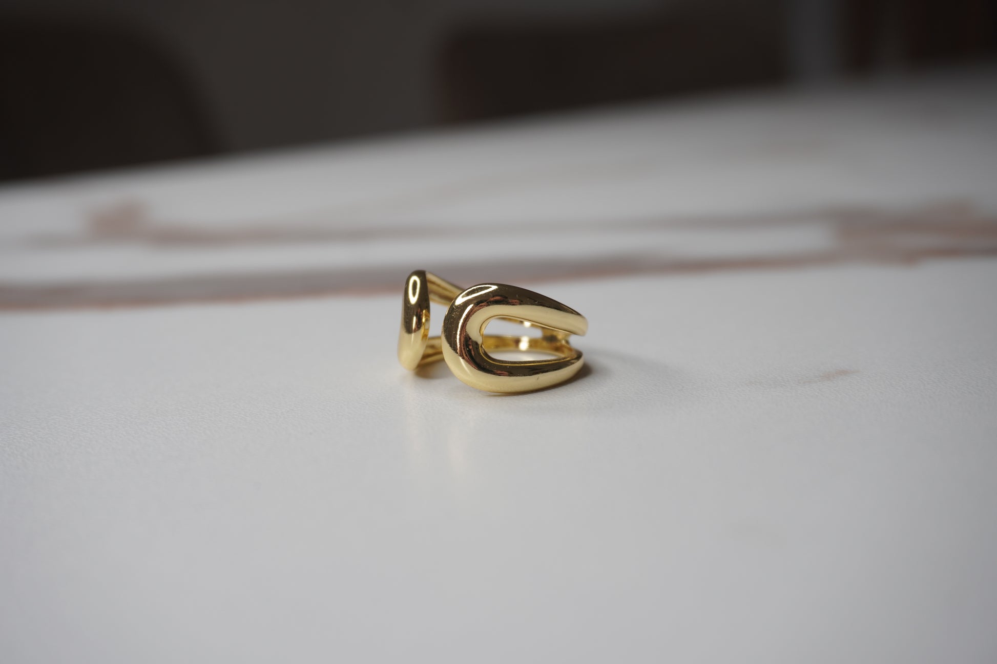Crafted in 18K gold-plated copper, its twisted silhouette and irregular curves create a soft yet intentional presence.