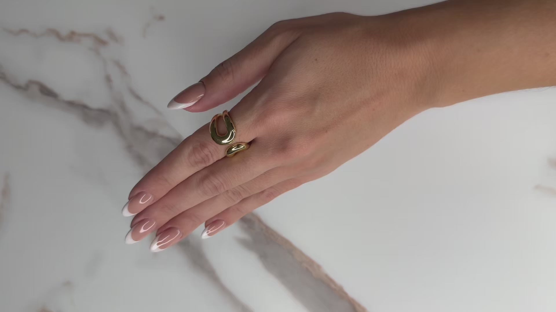 A fluid, sculptural open ring shaped like an infinite loop, as a reminder of the quiet strength that moves in circles, always returning to its center.